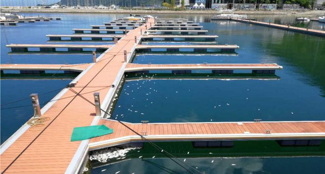 △大鹏游艇会游艇停泊港池中也漂浮着大量鲻鱼尸体