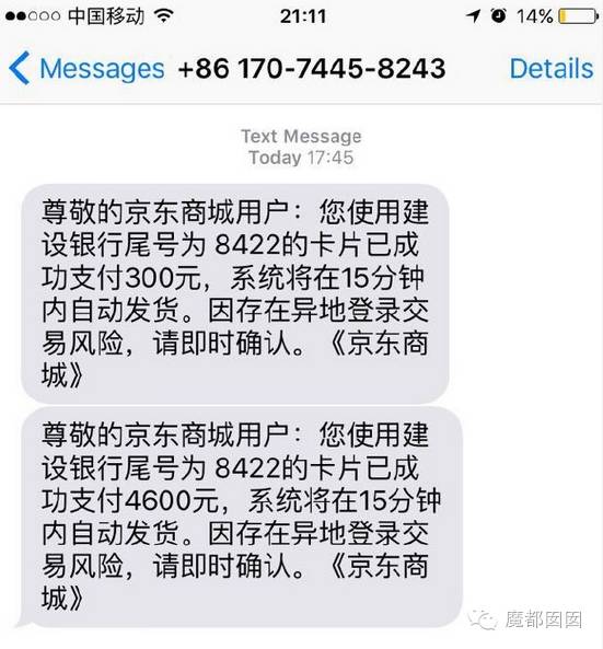 大家请看这个短信的抬头,