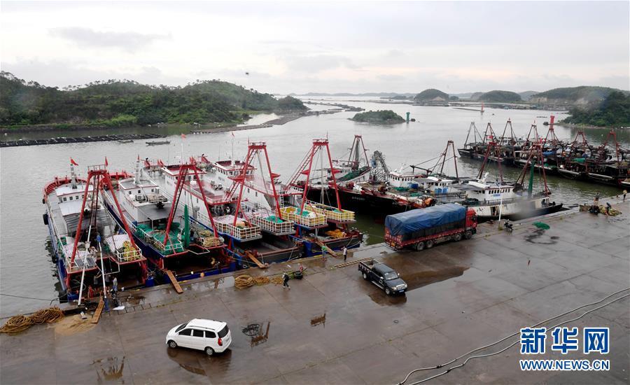 8月16日,在钦州市龙门港,渔船整装待发。 新华社记者张爱林摄