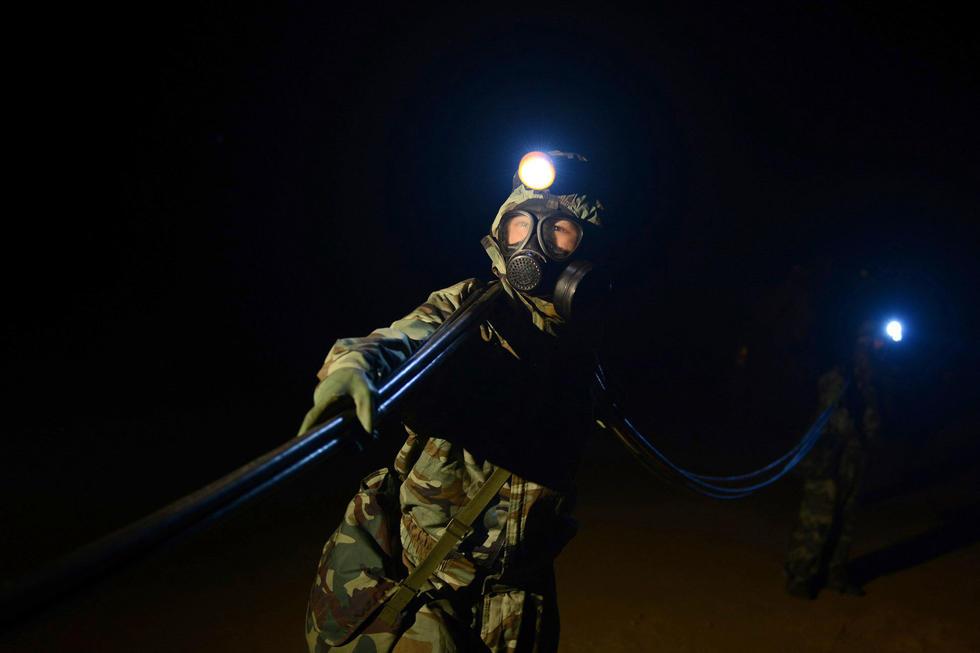 火箭军战士在夜间进行演练现场