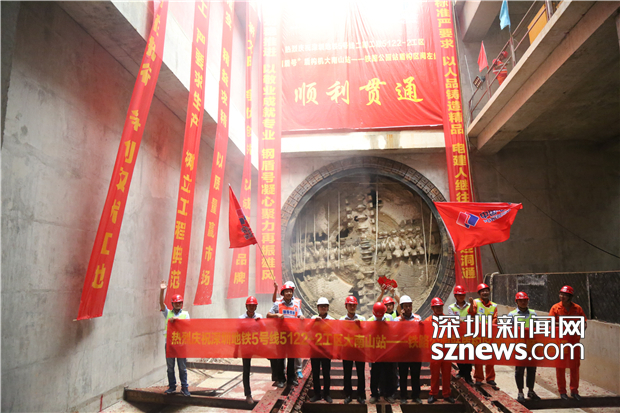 深圳新闻网8月17日讯(记者 涂胜)8月17日,在历经百天地下穿行后,由中国电建驾驭的“钢盾号”盾构机从深圳地铁5号线二期工程大南山站破土而出,实现了大南山站—铁路公园站盾构区间左线的顺利贯通目标,标志着深圳地铁5号线二期工程建设取得了又一重大突破,为全面完成年度建设目标奠定了坚实的基础。