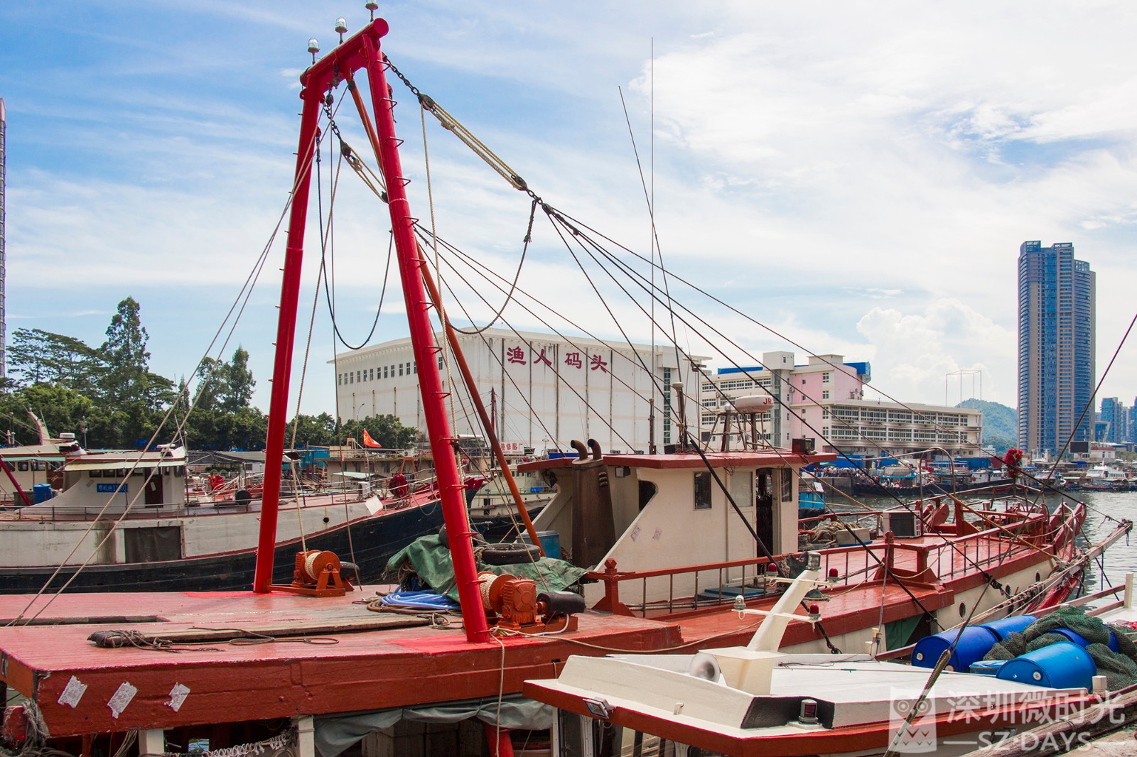 8月16日正午十二点,历时108天的休渔期终于结束了。大鹏新区的月亮湾码头,在阵阵鞭炮声中热闹开渔,然而在蛇口渔人码头,却是一番让我们意外的宁静,只剩艳阳当空,晒得人睁不开眼。