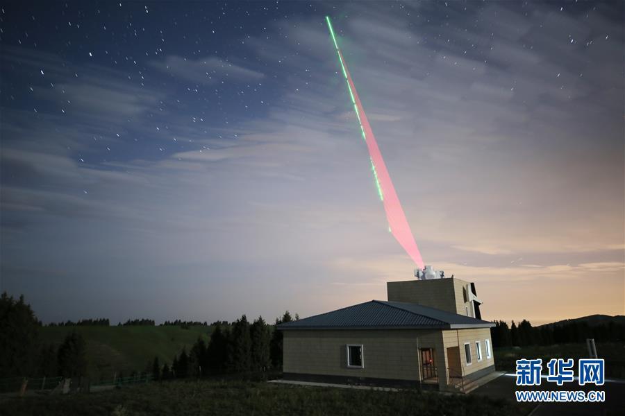 6月15日,在乌鲁木齐南山观测站,“墨子号”量子科学实验卫星过境,科研人员在做实验(合成照片)。