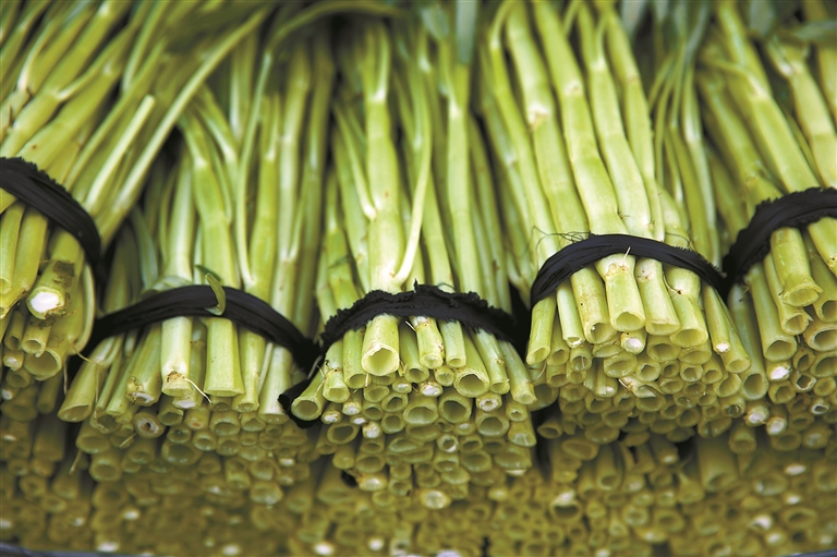 菜农下午采摘的空心菜,傍晚就会出现在市民的餐桌上。