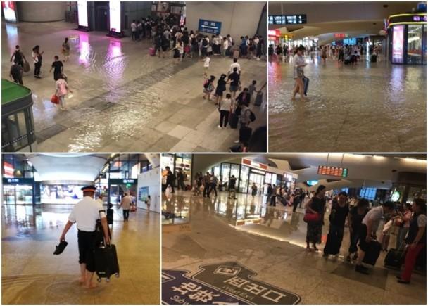 8月24日,湖北武汉受暴雨侵袭,市中心气象台于当日下午4时45分及5时37分,分别发布暴雨黄色及暴雨橙色预警讯号,表示市内多区会有50毫米以上降雨量,伴有雷电,阵风6至8级,提醒民众防范。受暴雨天气影响,武汉火车站出现水浸情况,水深盖过脚掌。
