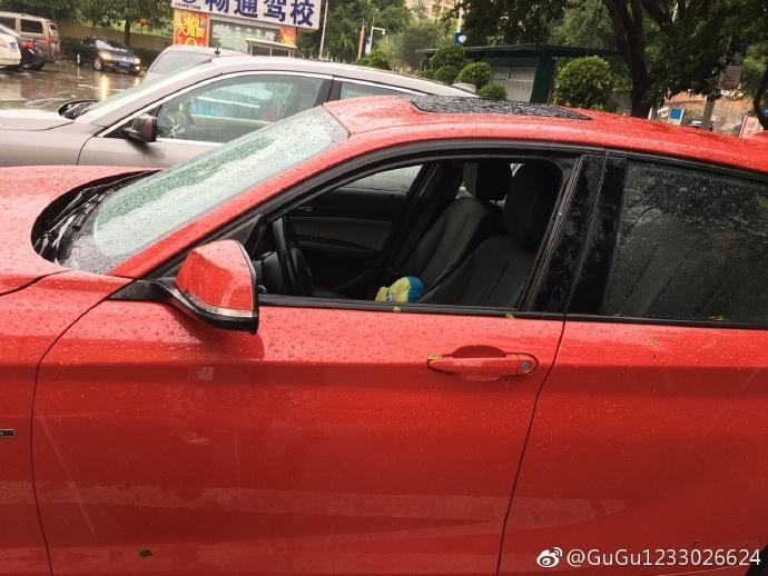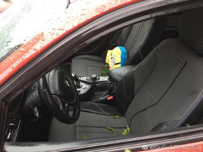 图为窗户未关的宝马车。感谢网友@GuGu1233026624供图