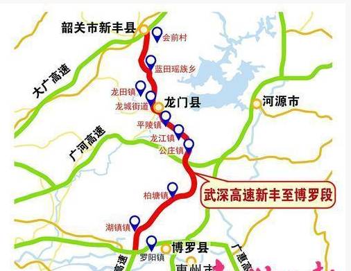 武深高速仁化至新丰段是武深高速公路仁化至博罗段的重要组成部分,分两期建成,全长162.94公里,按双向4车道、6车道高速公路进行设计,设计速度80-100公里/小时。武深高速公路建成通车后,将大大缓解京港澳高速公路车流压力。