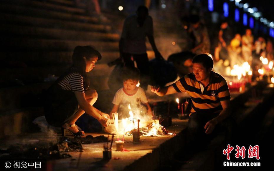 然后,点燃蜡烛等祭祀物品放入江中,为逝去的亲人祈祷并祈求风调雨顺,家庭幸福。谭凯兴 摄 图片来源:视觉中国