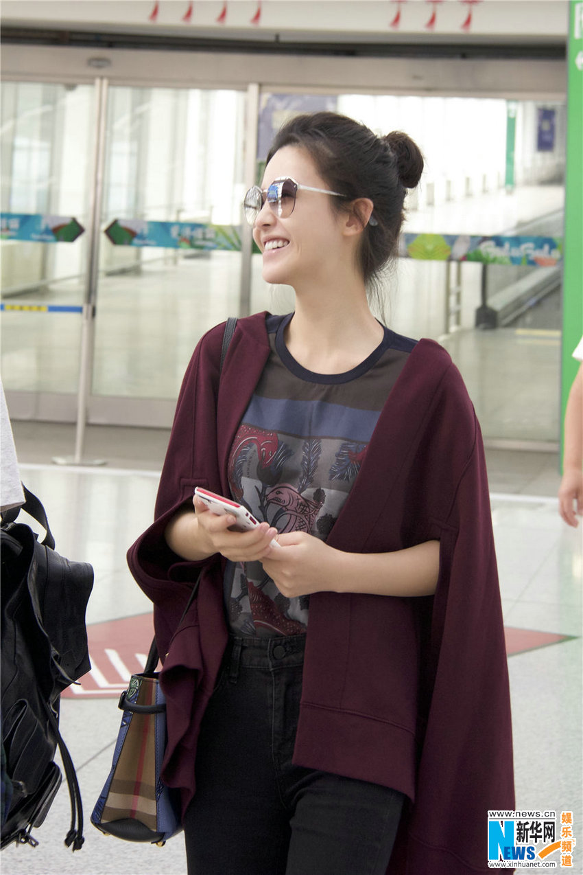 杨子姗丸子头素颜低调随性 机场偶遇赵薇