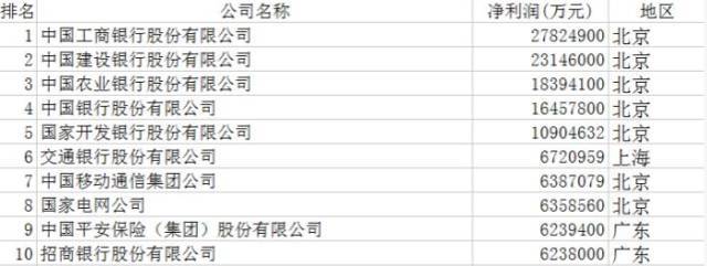 银行、银行,还是银行!工、建、农、中、交五大银行,再加上国家开发银行,6家银行总利润超过1万亿元,占500强总利润的超过36.6%;而500强中的245家制造业企业,共实现净利润5493.10亿元,占500强净利润总额的19.53%。245家的总利润仅仅相当于6家银行利润的一半。