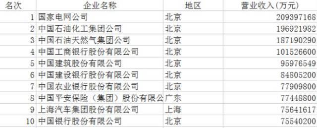 2017中国企业500强的营业收入总额首次突破60万亿元,达到了64.00万亿元,相当于去年我国GDP总额的86%。榜单上,营业收入超过1000亿元的共有157家,较上年增加5家,继续扩容。其中,国家电网公司成为中国唯一营业收入超过2万亿元的企业,仅次于美国沃尔玛,是世界第二大企业。