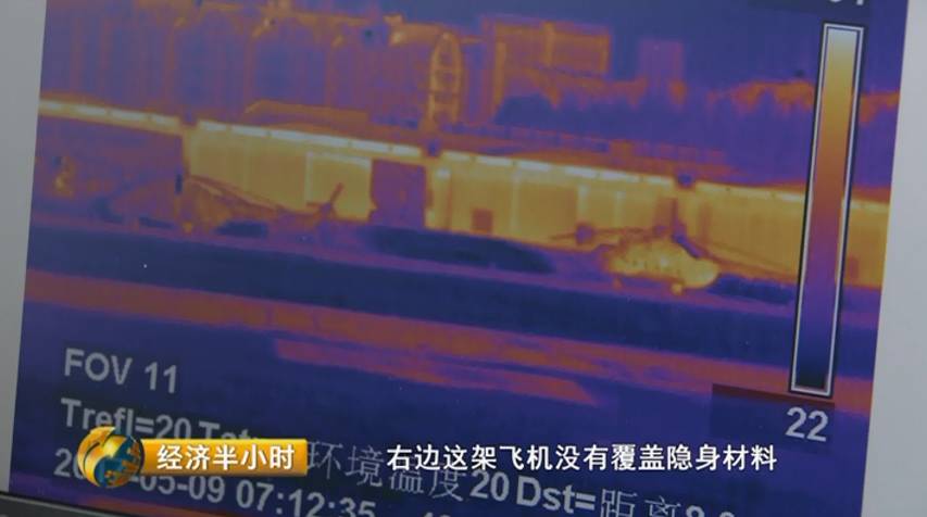 何雄:测试距离大概是在一公里、两公里至五公里,用红外仪器,用雷达、用无人机在空中进行侦查。左边这架飞机覆盖了隐身材料的部分,已经有很明显的热度斑点,完全与背景融合。右边这架飞机没有覆盖隐身材料,那么它的棱角、门窗、旋翼都是很清晰的,能够看到。