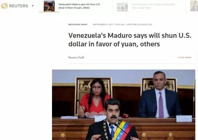 据路透社报道,委内瑞拉总统马杜罗9月7日表示,该国将以人民币为首的一篮子货币,取代美元在委内瑞拉国际支付体系中的主导地位。