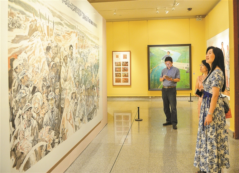 观众在欣赏陈延的作品《习仲勋在南梁》。 深圳特区报记者 胡蕾摄