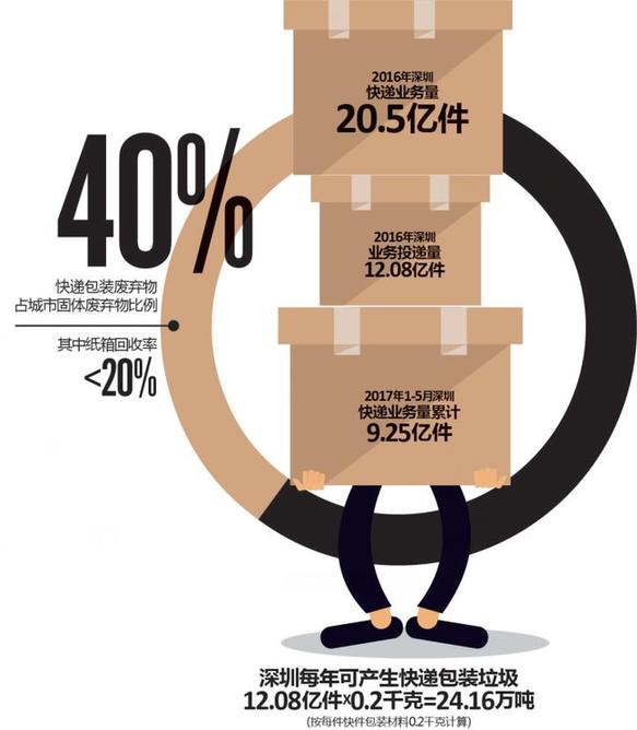 市民在享受网购便利的同时,随之而来的是快递包装的极大消耗、包装垃圾的巨大污染,“包装之惑”已成为一座城市不容忽视的环保新问题。本月7日,晶报“深生活”栏目深度报道了《快递时代的包装之惑》,引发社会关注。15日,深圳市人大常委会举行快递包装绿色发展座谈会,与会市人大代表建议尽快启动垃圾分类立法,将快递包装纳入城市垃圾分类回收体系,同时设立绿色回收基金,鼓励快递员和消费者主动参与快递包装的回收。