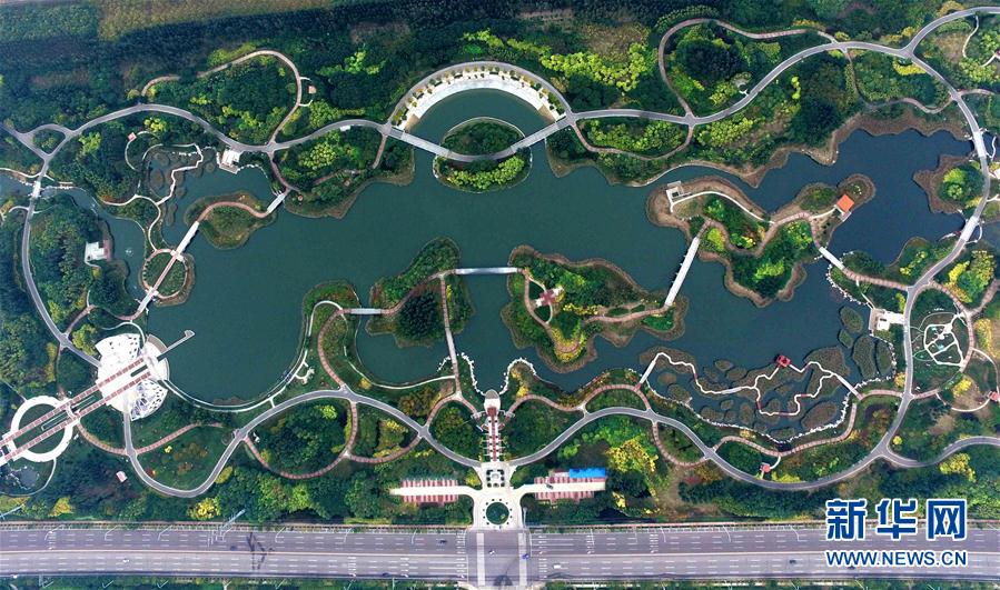 俯瞰天津滨海新区临港经济区的临港生态湿地公园(2016年10月21日摄)。新华社记者岳月伟摄