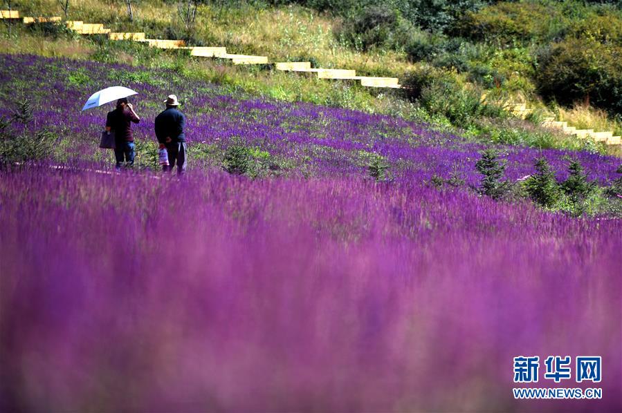 9月11日,两名游客在边麻沟村的花海农庄景区游览。9月的青藏高原秋高气爽。距离青海省会西宁市51公里的青海省大通回族土族自治县朔北藏族自治乡边麻沟村的花海农庄,又迎来了一批操着各地口音的游客。短短两年时间,边麻沟这个地处偏僻、过去多年无人问津的小山村,打造出了集花卉基地、人文景观、餐饮住宿、娱乐游戏及其他配套设施为一体的乡村旅游品牌,“花海农庄”已成为很多外地游客到青海旅游时必到的地方。新华社记者王博 摄