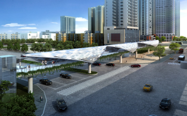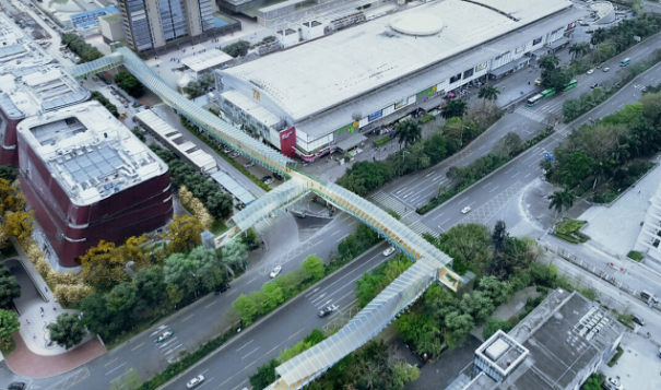 其中一共9座天桥,将3号线吉祥地铁站、龙城广场地铁站与周边的鸿进花园、时代广场、万科广场、万科天誉、世贸百货、三馆一城、时代广场、龙岗文体中心等地块相互连接,打造空中有连廊、地下能互通的立体化慢行系统。除2号天桥外,八座天桥通过国际设计招标,拟定各天桥可在以下外观设计一、二、三中选择,各天桥设计理念及效果图如下: