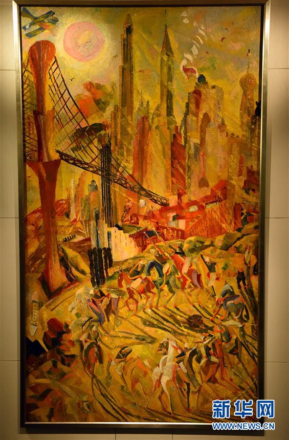 香港苏富比展出本季秋拍估值最高的现代油画油画《工业之轮在纽约》在香港苏富比预展(9月21日摄)。 9月21日,香港苏富比在香港展出旅美华人、现代艺术家朱沅芷的巨幅油画作品《工业之轮在纽约》。该作品为本季秋拍现当代艺术领域估值最高的一幅画,估价为0.8亿至1.2亿港元。朱沅芷为首位获邀参展纽约现代美术馆的华人艺术家。这幅长逾两米、宽逾一米的油画创作于1932年,当时纽约现代美术馆因乔迁重新开幕,朱沅芷等艺术家应邀以“战后的世界”为主题创作并参展。新华社记者秦晴摄