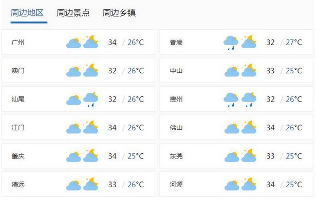 23日夜间到24日下午,我市多云有阵雨,最大雨量25.7毫米出现在大鹏新区柚柑湾气象站;全市最低气温普遍在26℃~28℃左右,最高气温普遍在32℃左右;偏东风3~4级,最大阵风6级以上;空气相对湿度65%~98%;全市能见度普遍在10公里以上,雨时能见度降至2公里以下。