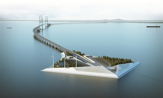 未来,西人工岛将建设隧道管理站、救援站、通信站等必要的运营管理设施,以及设置路政、交警和消防执勤点等。岛上建构筑主要包括主体建筑、风塔、直升机停机坪等,并配套建设办公楼、宿舍等管理用房以及各类配套用房。岛上设环岛路,主要满足消防救援以及运营期巡视要求。西人工岛东北侧设救援码头一座,长度为65米,宽度为24米,可停靠200吨救援艇船。