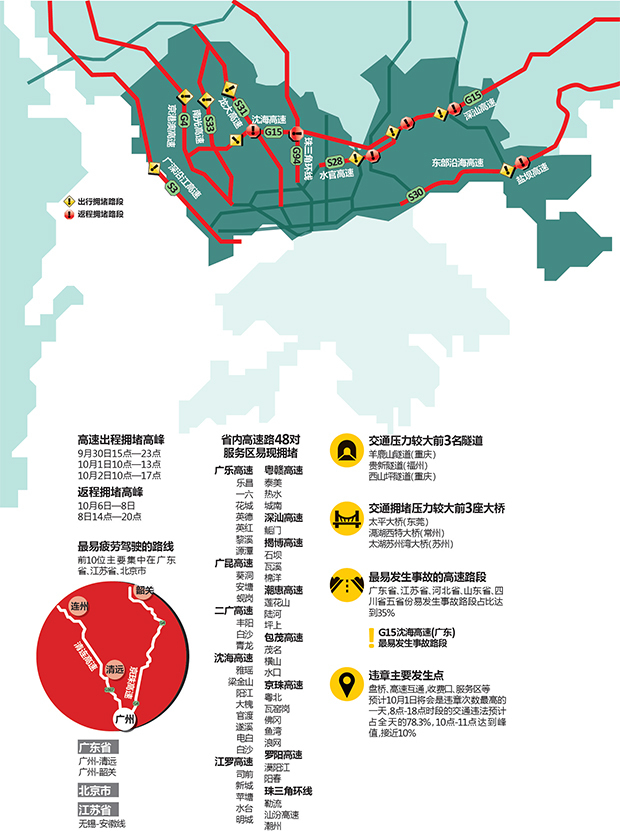 10月1日高速拥堵将超平时4倍 深圳10条出程高速易拥堵
