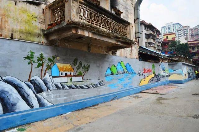 三是对老旧墙体进行建筑绘画。