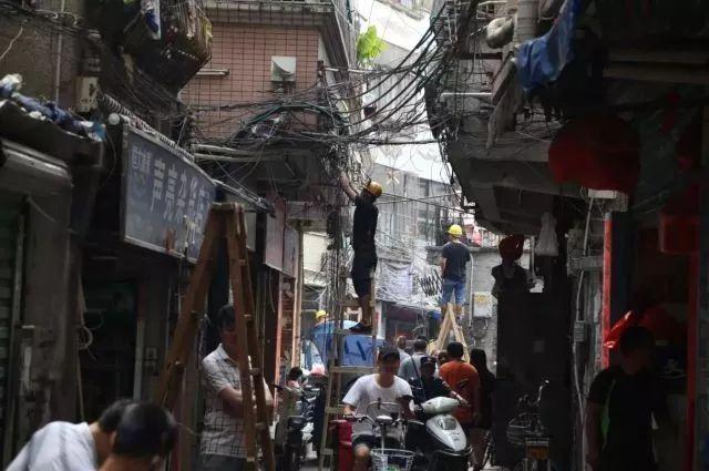 为2017深港双城双年展安全进行,南头街道办事处就对城中村“三线”情况进行了彻底的摸底调查,按照“统一普查、统一规划设计、统一线路”的原则,因地制宜,采用“架空+贴墙”的模式,对空中蜘蛛网“开剪”,启动“三线”整治。