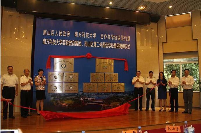6月15日,在南山区人民政府与南方科技大学合作办学签约仪式上,两大教育集团揭开神秘的面纱——南方科技大学实验教育集团和南山区第二外国语学校集团。南山大型教育集团增至五个。