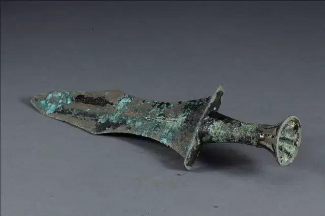 ▲腰鼓形茎一字格青铜短剑(战国)。剑茎镂长条孔的做法,在岭南地区未见,只见于云贵高原滇文化和夜郎文化。
