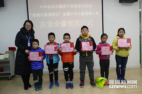 深圳新闻网讯(记者 王志明)中华经典主题亲子阅读系列活动之“跟随名家诵诗文”全国少年儿童诵读大赛座谈会暨颁奖近日在南山图书馆举行,对在“穿越千年、感受经典”中华经典主题亲子阅读系列活动、“跟随名家诵诗文”全国少年儿童诵读大赛、“丹青绘经典”诗配画书签制作大赛中的获奖者进行表彰。经过近几年的努力,南山图书馆层级儿童阅读推广体系--“通往幸福的阶梯”成绩斐然,为南山儿童破解阅读的“密码”。