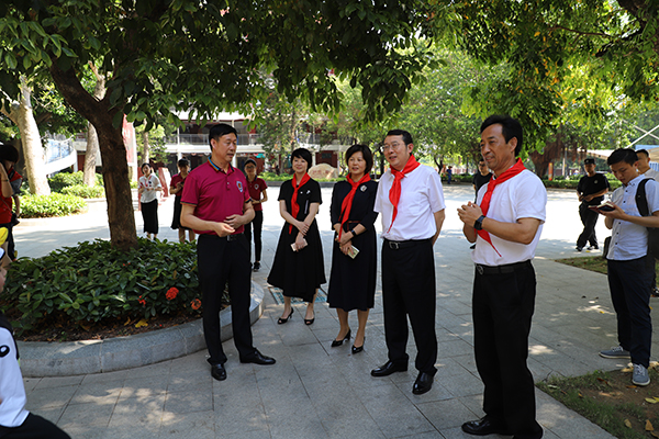 下午近3时,王强、饶红蕾、刘根平等一行来到南山文理实验学校,就受到学生们的热烈欢迎,大家为他们系上了鲜艳的红领巾。在学校校长吴希福的陪同下,大家先参观慰问了“企鹅课程”舞蹈队的队员们。