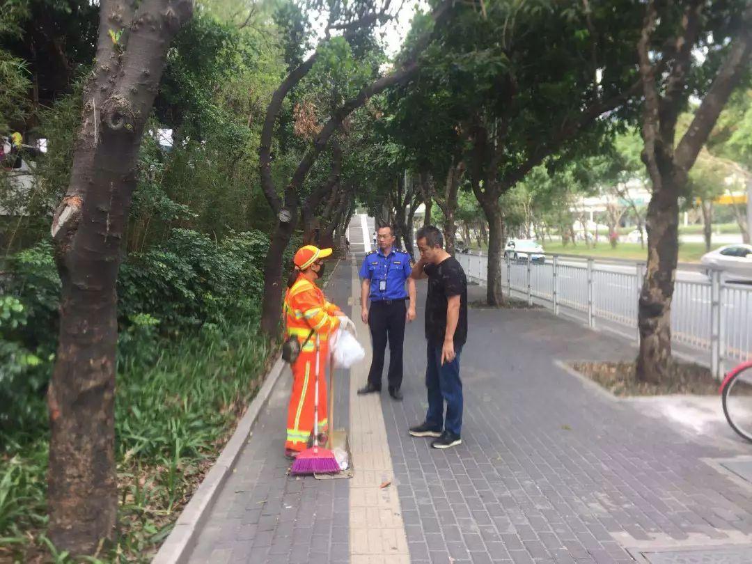 14日上午,街道党工委冯雨副书记带领驻点团队成员到前海社区进行市容环境巡查。