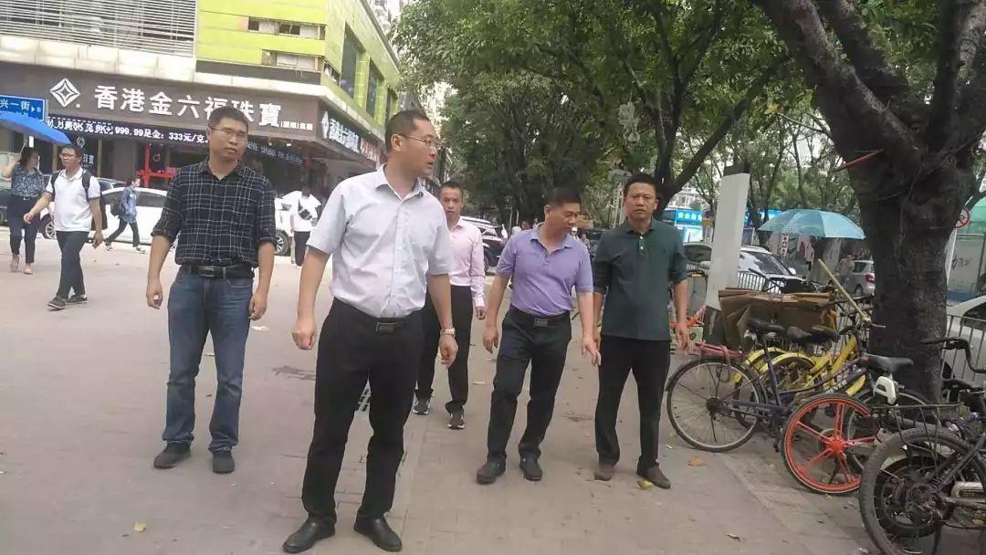 15日下午,街道书记潘学郭带领城管科科长李善雄到红花园社区检查市容环境及立面刷新等相关工作。