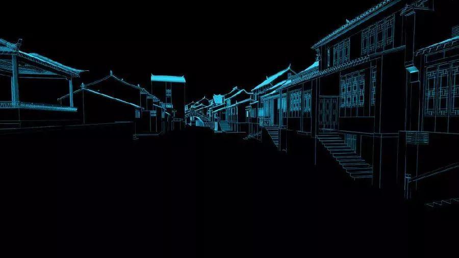 随后,场景来到了作为世界互联网大会永久会址的乌镇。潺潺的流水幻化成穿梭的数据流,黑瓦白墙的建筑变成了充满现代科技感的虚拟乌镇。