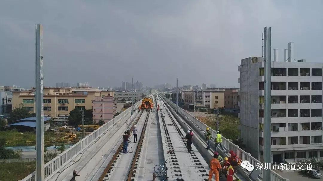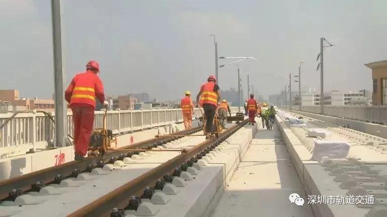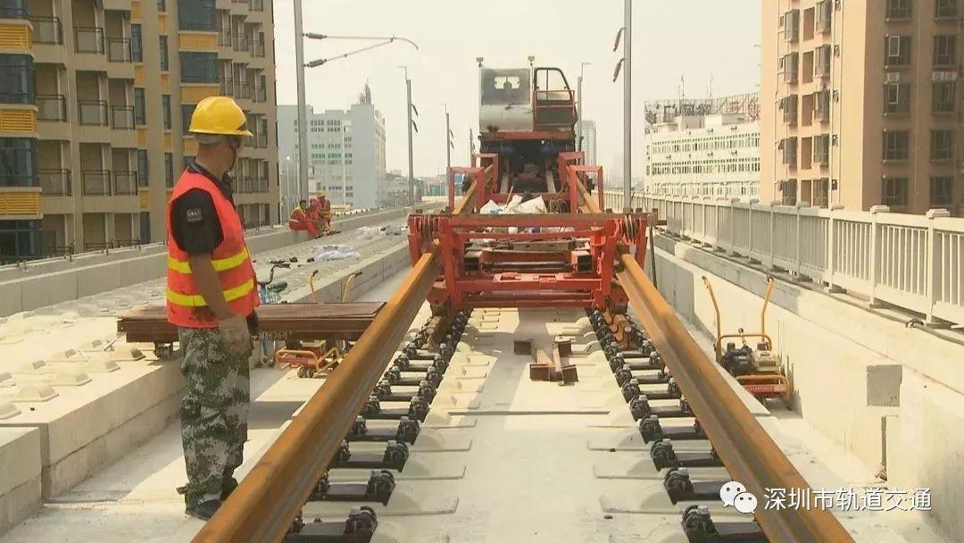 而铺轨进入深圳的具体时间节点:11日上午从金沙站开始不停歇作业,到下午两点已经临近深圳,当天晚上,铺轨的距离达到深圳海上田园站五百米的地方。相关施工负责人表示,预计本月20日会铺到深圳机场北站。