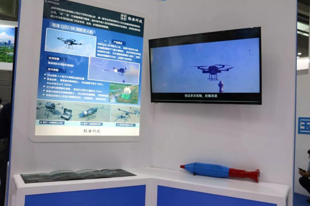 搭载干粉式灭火弹,在地面站指挥下飞到火源附近,自主寻找并对准目标发射灭火弹,灭火弹穿透玻璃进入室内,按照预定时间抛洒灭火剂,达到灭火的目的。