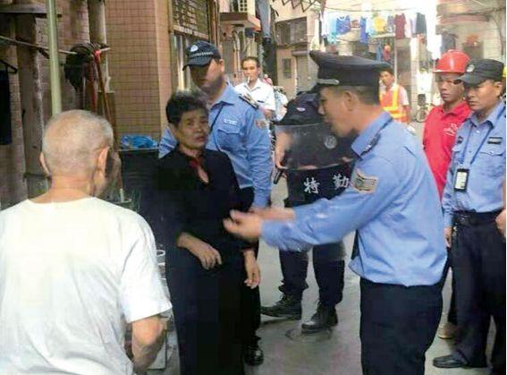 ▲颜志刚(前排右一)在城中村进行文明劝导。