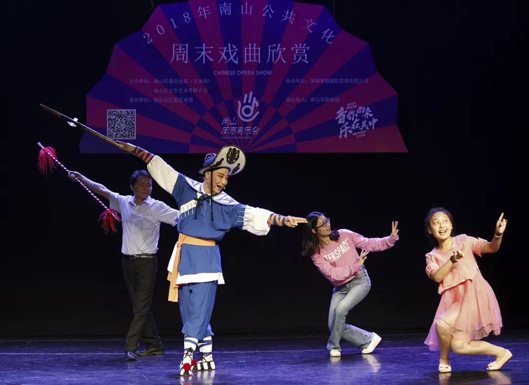 值得一提的是,“戏曲进校园”系列活动涵盖京剧、粤剧、皮影戏、传统手工艺培训等,在2018年共走进南山区18所中小学,举办传统文化培训超360课时,举办汇报演出6场,培养在校学生22人次在广东省青少年粤剧大赛、深圳市鹏城金秋市民文化节、深圳市戏曲娃汇演、少儿艺术花会的戏曲部分赛事中获奖,涌现了一批粤剧、京剧少年戏曲苗子。