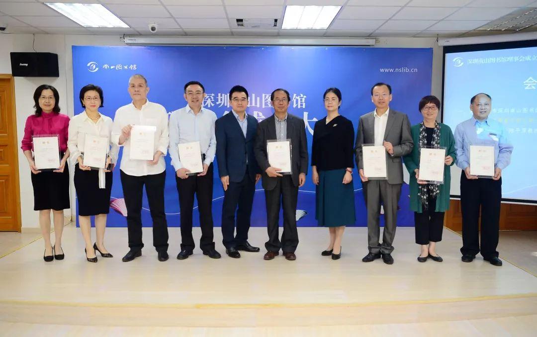 ▲南山图书馆理事会成立大会,为理事颁发受聘书