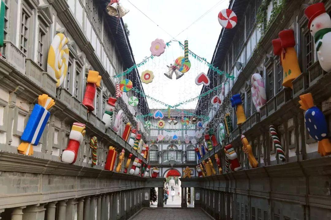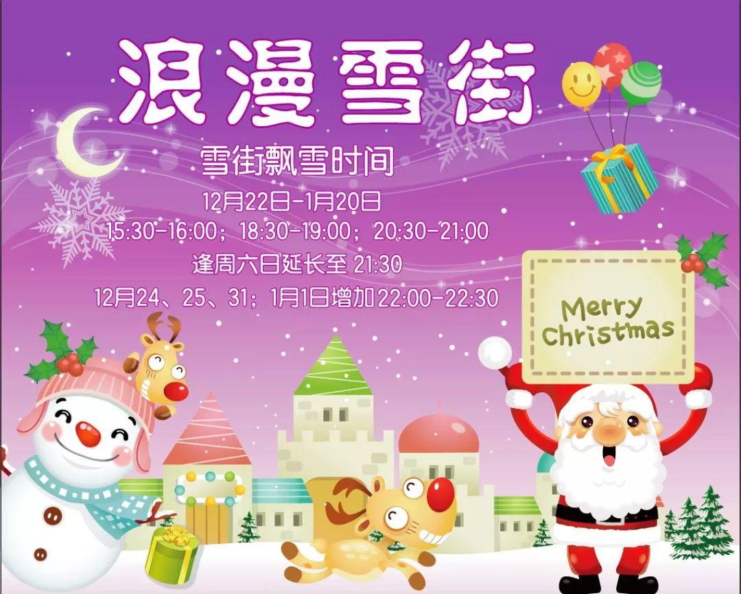 街道中段圣诞小镇更是雪花飘飘扬扬