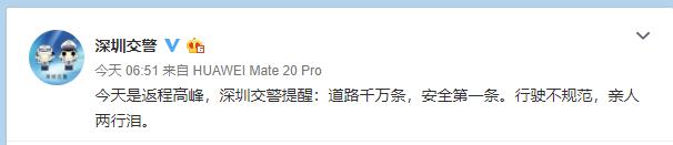 请市民朋友外出游玩前先行规划好行车时间和路线,并通过电视、广播、以及“深圳交警”官方微博等媒体查询获取实时交通路况信息,确保行车畅顺。