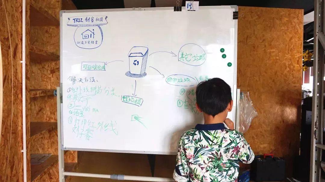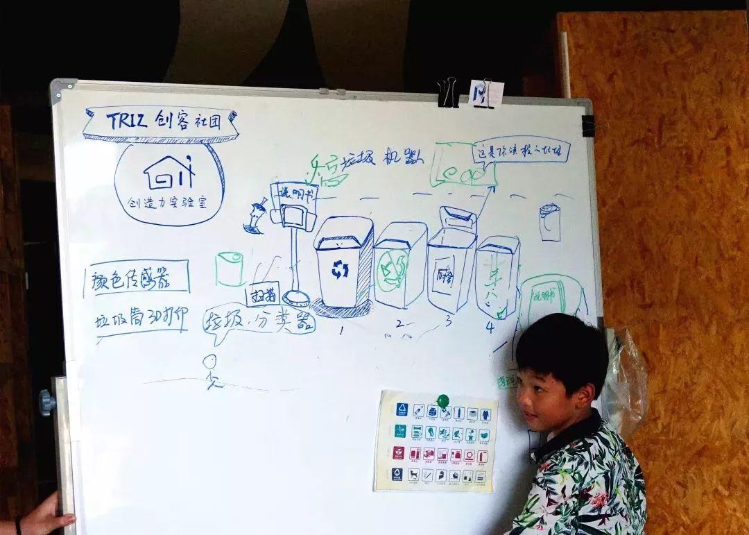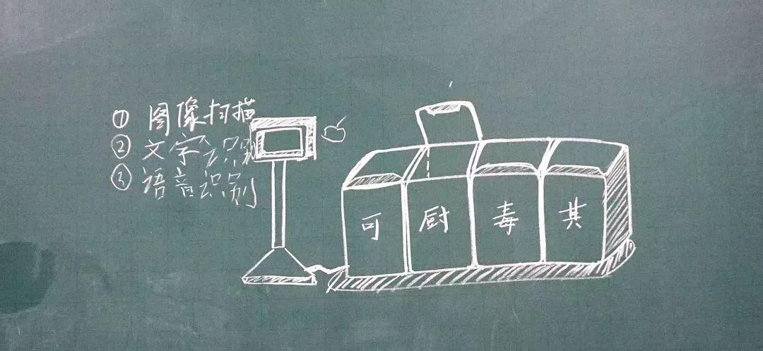孩子们讨论后认为,可以尝试把整包垃圾扔到一个垃圾桶中,通过红外线的方式让垃圾桶自动识别垃圾种类,并分拣运送到不同的隔间,从而实现分类目的。