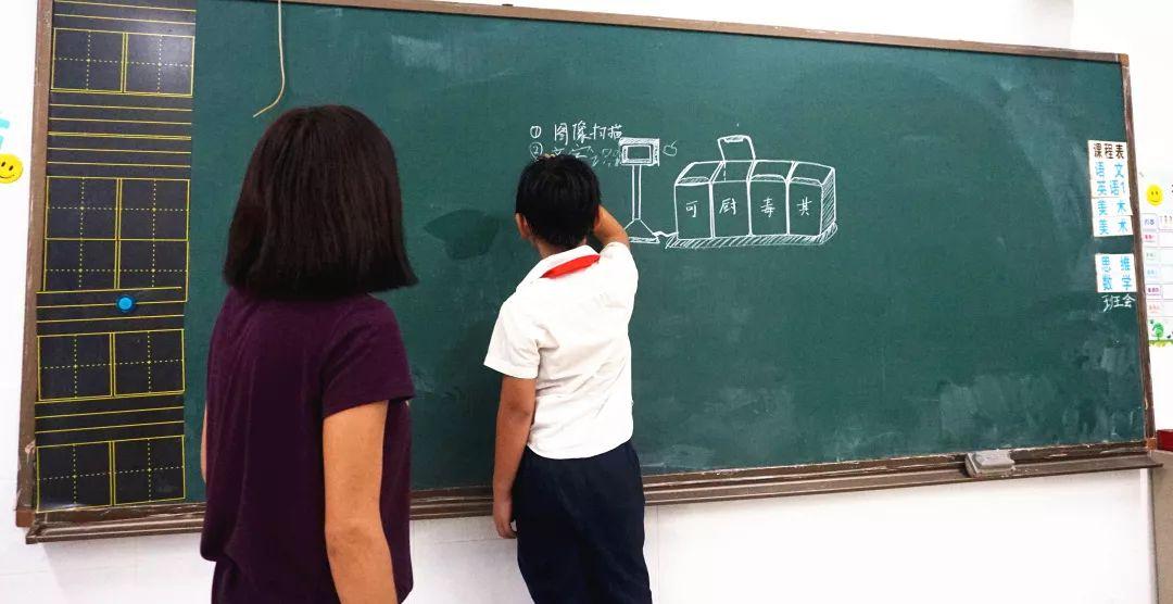 作品完成之后,他们都成了垃圾分类的小专家,在学校里和同学们分享展示作品的时候,孩子们常常特别强调:“我们的生活需要进行垃圾分类,希望大家一起参与垃圾分类!”
