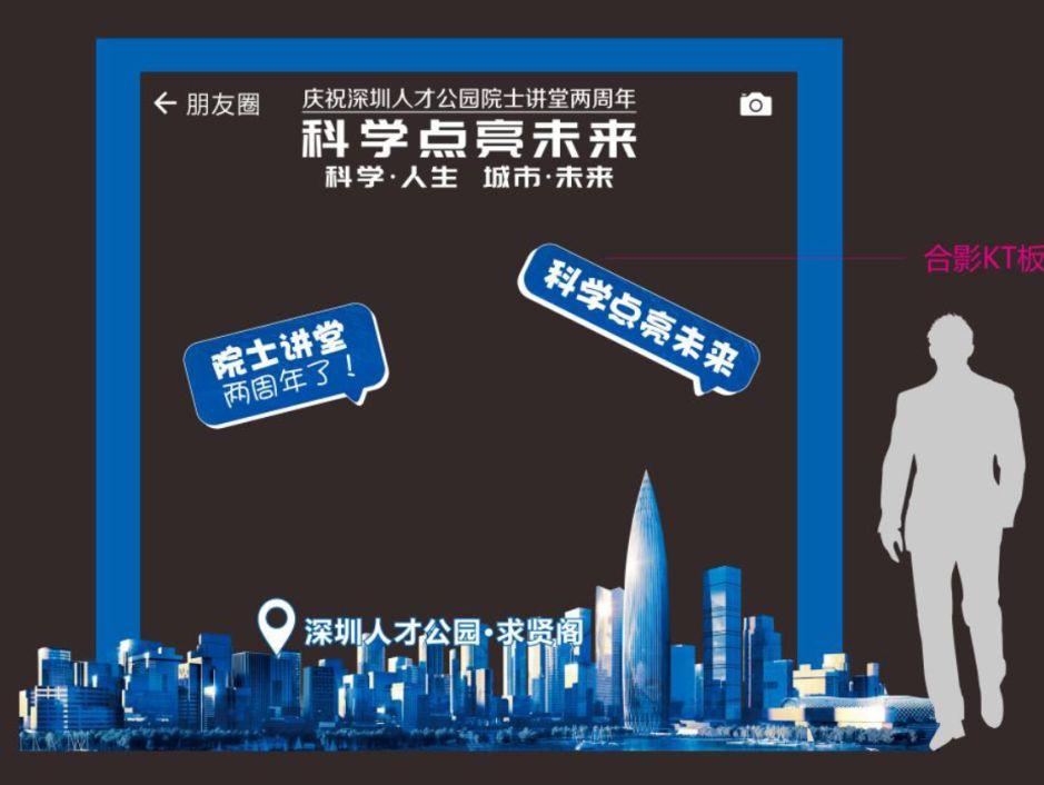 在求贤阁周边设置有院士讲堂2周年合影拍照框,听众朋友可以在院士讲堂开始前,手持讲堂祝福标语牌,在相框内拍照并转发朋友圈集齐11个赞,在院士讲堂结束后换取纪念品(数量有限,先到先得哦~)。