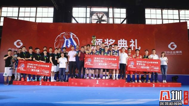 深圳新闻网讯(见圳客户端、深圳新闻网记者 王志明)11月24日,2019“粤海正中杯”企业篮球联赛总决赛暨颁奖典礼在深圳南山PW体育公园圆满落幕。时隔两月,109支企业球队经过149场激烈角逐,终于迎来了激动人心的王者加冕时刻。燎原国际队突破重围最终夺得王者桂冠,轻松到家队和宏盛地产队分别获得亚军、季军,三分球比赛由英业达队代表谢先生独占鳌头获得冠军。南山区粤海街道办事处副主任李强、南山区文化广电旅游体育局调研员张平、深圳正中企业服务有限公司总经理刘春添、助理总经理盘煜彬及各项目和部门领导出席活动现场,并分别为获奖球队颁奖。