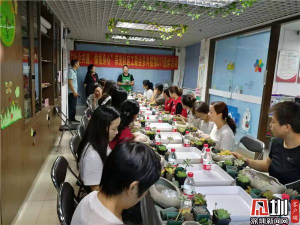 深圳新闻网讯(见圳客户端、深圳新闻网记者 李蔓铃 通讯员 徐丽萍)为加快推进社企共建步伐,凝聚社区、企业力量,切实丰富大家的精神文化生活,10月25日下午,由京光社区党委,京光社区工联会组织辖区慢性病防治医院、互联网产业园内的公司女职员进行了多肉植物DIY活动。活动吸引了35名各企业女职员的热情参与。