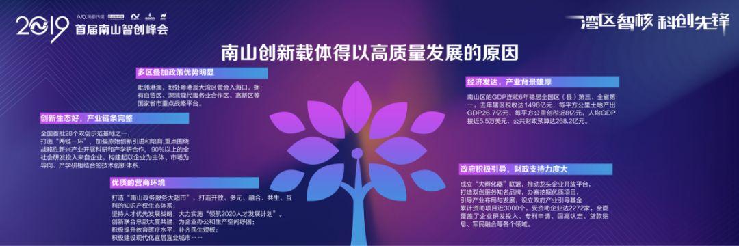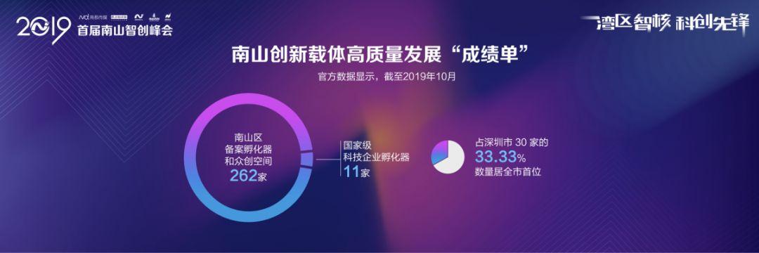 创新驱动发展,今年前三季度,南山区的GDP突破4000亿元;同时,作为全国首批28个双创示范基地之一,截至今年10月,南山区备案孵化器和众创空间262家,孵化面积160万平方米,区域孵化能力领先全国。肖辉介绍,凭借“科技创新+总部经济”双轮驱动的优势,南山区驶入发展快车道,培育出了包括腾讯、华为、中兴、大疆、迈瑞等一大批优质的科技企业,就在不久前,工信部研究院发布《2019中国城区综合竞争力百强研究》,南山区再度蝉联中国百强区之首。