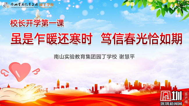 见圳客户端·深圳新闻网讯(记者 王志明)“在教学条件变化、交流空间变化中,我们把疫情、把灾难当成教材,把新的教与学方式,作为面向未来教育变革的探索……”2月17日上午,在主题为“同气连枝,共盼春来”2019-2020年度第二学期开学典礼(空中课堂篇)暨校长开学第一课直播中,南山实验教育集团园丁学校谢慧平充满信心地说。