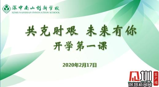 见圳客户端·深圳新闻网讯(记者 王志明)2月17日上午九点,深中南山创新学校全体师生通过视频,一起上了一节别开生面的“开学第一课”。学生发展中心副主任李梦主持本次活动,学校党支部书记、执行校长韩晓宏、校医余倩、心理老师李轩参与“讲课”。 活动伊始,师生们一同观看深圳中学最新宣传片,感受深中“追求卓越,敢为人先”的精神和引领。 紧接着,国歌奏响,在这场特别而庄严的升旗仪式上,全体师生面向国旗肃立敬礼,向所有为祖国“保驾护航”的人致敬。 韩校长引经据典,引导同学们思考从这次新冠疫情中看到了什么,学到了什么。他说,我们看到了责任,看到了善良。我们要学会爱,学会敬畏自然,学会担当。他还提出一个问题:未来,还会有新的病毒吗?经此一“疫”,深创人定当更加有爱,更有担当,更加善良,更加热爱生活。 余校医又通过动画带着大家认识了新型冠状病毒这个“小怪兽”。在家中怎样预防新型冠状病毒肺炎?新型冠状病毒肺炎流行时,我们怎么吃才好?前往公共场所又该如何预防新型冠状病毒肺炎?如何正确佩戴口罩和洗手?校医都悉心地为我们作了解答。 疫情当前,“病毒”对我们的生活造成了影响,同学们难免出现一些负面情绪,心理老师李轩为大家送上一副健康安全的“心理口罩”,帮助同学们树立战胜病毒的信心。 这一场没有硝烟的“战争”中,医护工作者、人民警察、基层工作者、工人、快递员、外卖小哥……各行各业的人都坚守自己的岗位,创造生命的奇迹。“宅”在家中的深创师生一样在行动,他们向“抗疫战士”致以最崇高的敬意,为“英雄城市”武汉送去最诚挚的祝福。